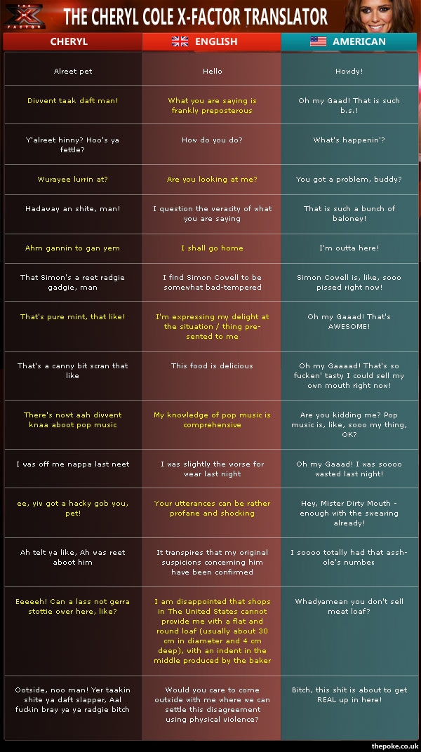 Cheryl Cole geordie translator for US x-factor viewers Cheryl Cole geordie translator for US x-factor viewers Cheryl Cole geordie translator for US x-factor viewers