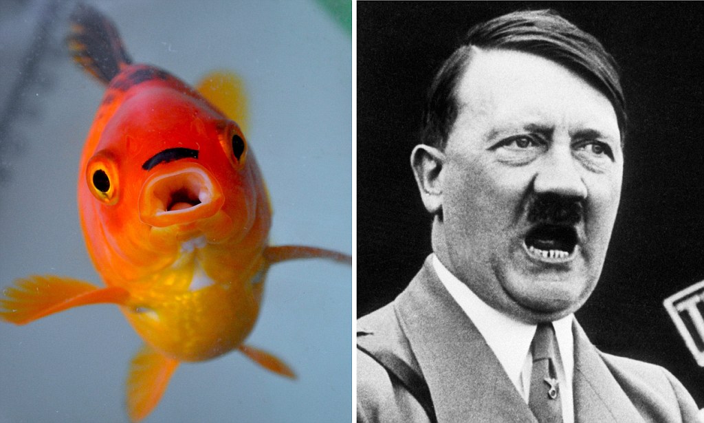 The five-year-old common goldfish has recently developed an uncanny resemblance to the evil German dictator.
