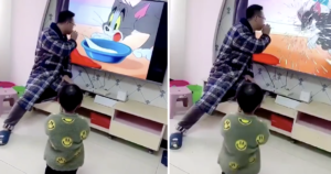 This clip of a dad going the extra mile in pursuit of family entertainment went viral because it’s very clever and such a lovely moment.