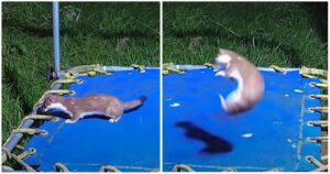 A stoat living its best life on a trampoline is the lift we all need
