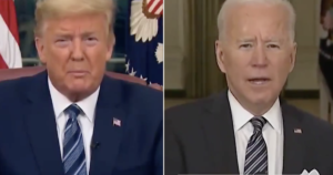 President Joe Biden gave a televised address to the nation about the coronavirus exactly one year after Donald Trump did the same thing.