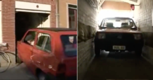 But this two minutes of TV is simply next level stuff. Hi garage is only 6cm wider than his car but is it a problem? No. And this is why.