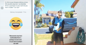 Amazon guy accidentally throws package onto roof and it’s unintentionally hilarious