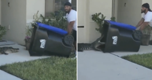 We’ll never complain about taking the bins out again after watching this clip of a Florida man dealing with an alligator in the neighbourhood.