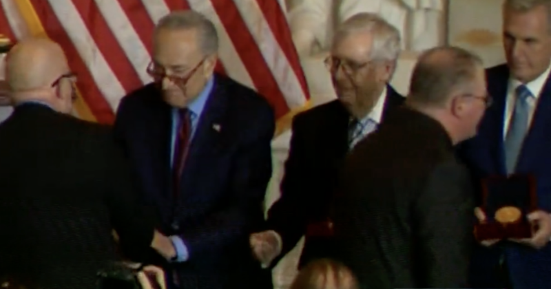 Holy shit. January 6 police officers and their families skip Mitch McConnell as he tries to shake their hands. (h/t @acyn) pic.twitter.com/Uc7mSHxC9s