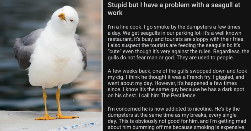 Spare a thought for this cook who is being bothered so much by a seagull during their breaks at work that they resorted to going on Reddit to ask for advice.
