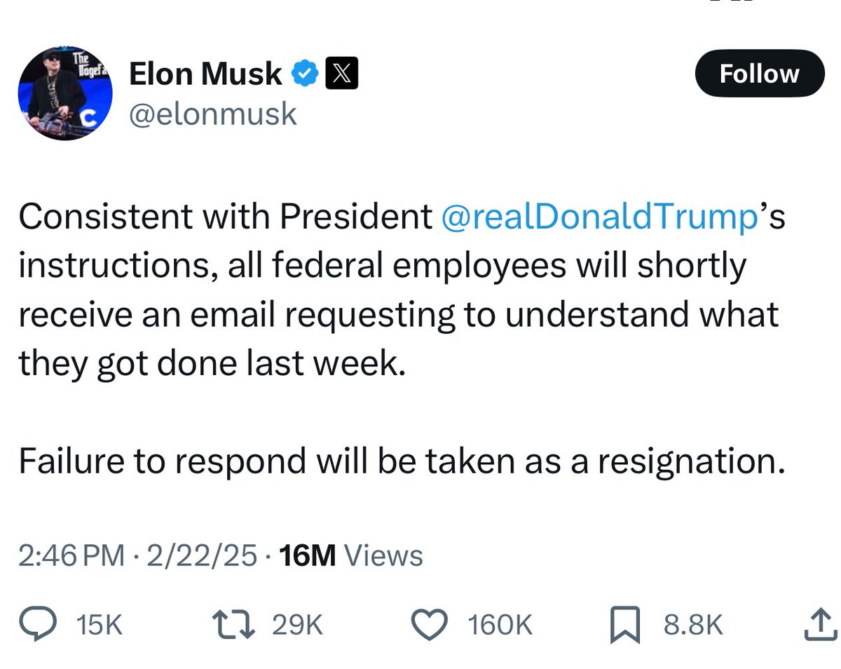 Elon Musk is asking US federal workers to list their achievements or resign and this senator’s A++ comeback was the ultimate one-two
