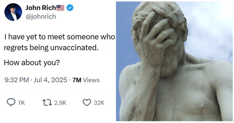 An anti-vaxxer said he had ‘yet to meet someone who regrets being unvaccinated’, and everybody made the same unfortunate point
