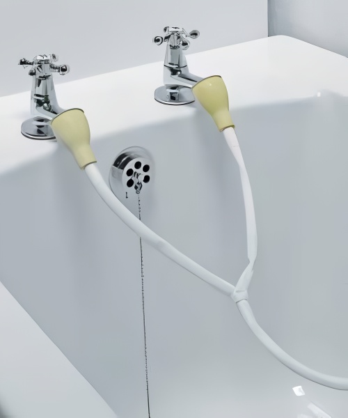 The worst bit about the hair wash was having to use one of these torture devices, which would either freeze your head or scald it when the pressure built up too much and one of the rubber things popped off the tap.