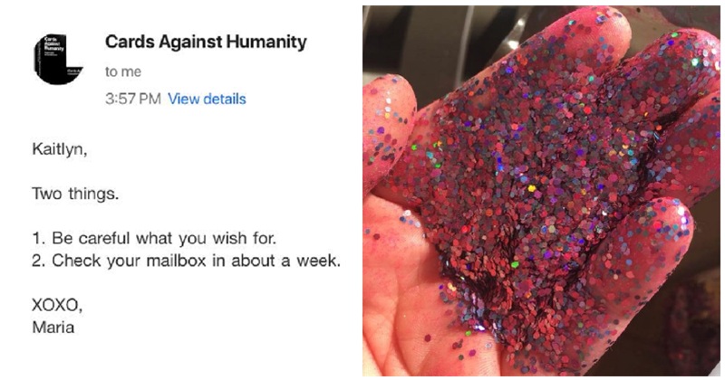 With Pride parades taking place across the summer of 2022, Cards Against Humanity offered a Pride add-on pack, with a glitter option. When Facebook user, Kait Johnson, tried to order the glitter version, it was unavailable, so she asked Cards Against Humanity for a favour.