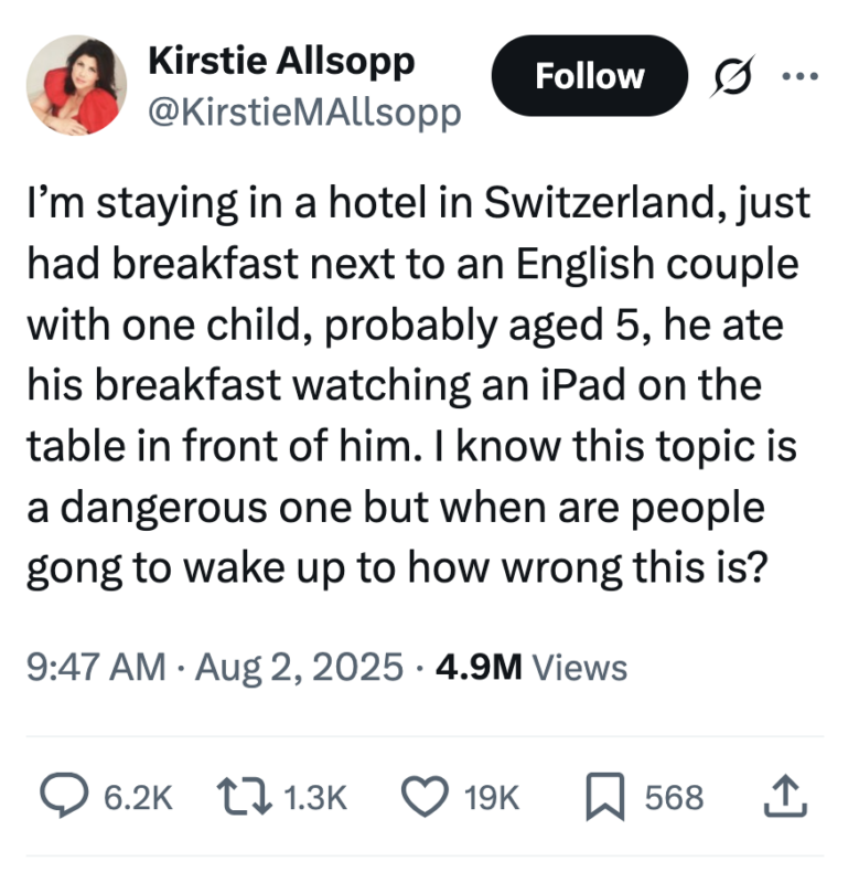 You’ll probably know by now – you can hardly avoid it, given the amount we’ve written about it – how Kirstie Allsopp took umbrage at a couple who gave their child an iPad to keep them occupied while they had breakfast.
