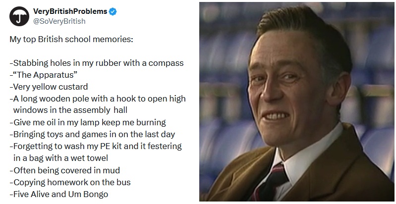 The wonderful @SoVeryBritish posted some British school memories that were like a mini time machine, if you went to one.