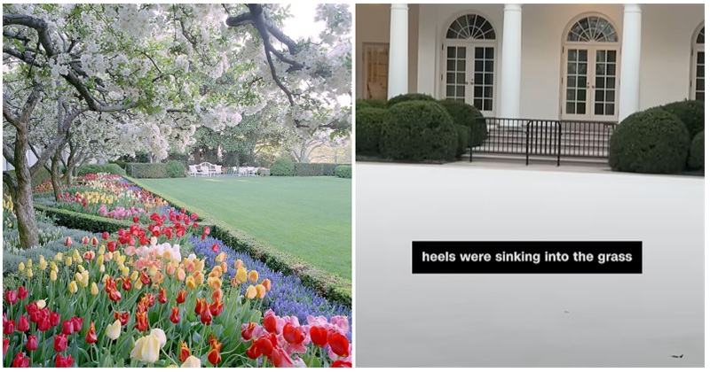 In 2020, there was uproar after Melania Trump’s revamp saw most of the colour removed, leaving rectangular borders of geometric arrangements of white flowers around the lawn, but that was nothing to what her husband has done to it.