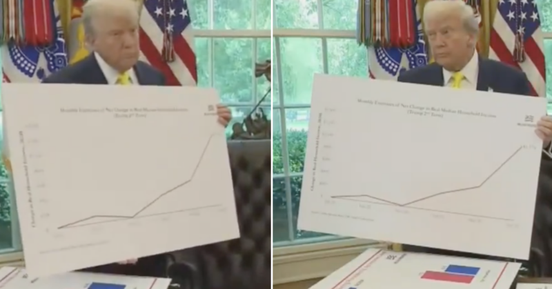 Donald Trump brought out a big board with some lines on to prove how well his economy is doing – 13 of the most brutal and totally on-point takedowns