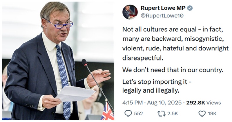 Rupert Lowe posted that not all cultures are created equal, and it was a self-own visible from Land’s End to John o’Groats