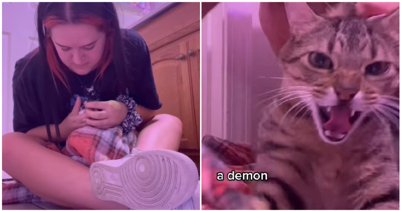 TikToker @itmekyleigh went viral with this video of her attempts to get her beautiful tabby cat Harry to take his pill.