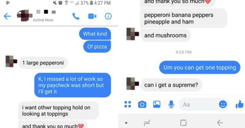 2. ‘My unemployed brother asking me to order him a pizza’