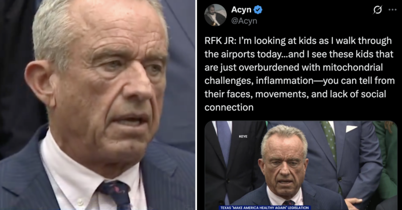 RFK JR: I’m looking at kids as I walk through the airports today…and I see these kids that are just overburdened with mitochondrial challenges, inflammation—you can tell from their faces, movements, and lack of social connection pic.twitter.com/svfdIqAntK