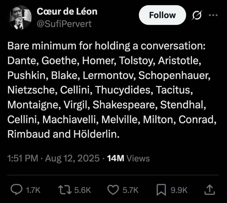 We’re aware that it’s a bold claim, but the following tweet from an account called Cœur de Léon may well be the most pretentious tweet of all time.