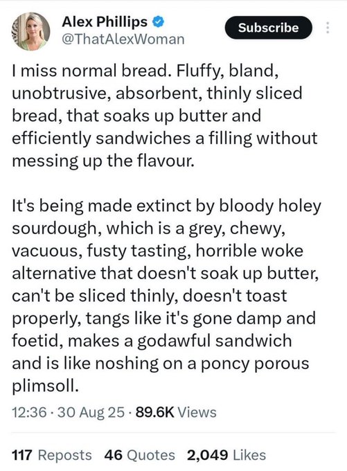 No-one is forcing you to buy sourdough, poppet. https://t.co/qBqY3njER8 pic.twitter.com/Qmlt9eeotV