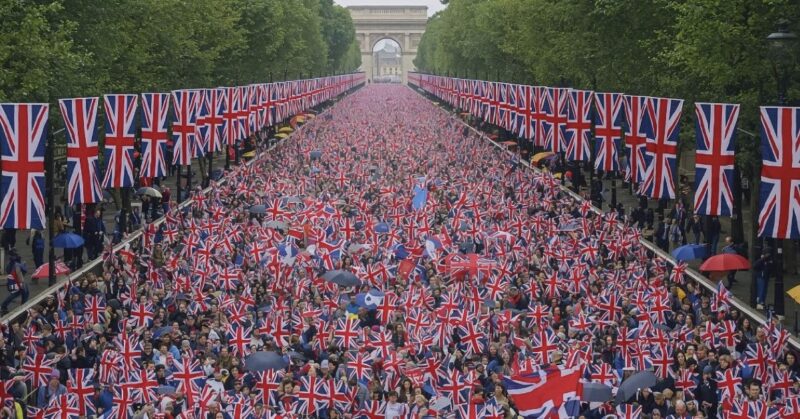 He backed up his claims by posting a pic of a huge throng of people waving Union Jack flags.