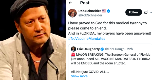 Rob Schneider thanked God for ending vaccine mandates in Florida and got roasted so bad it’s painful
