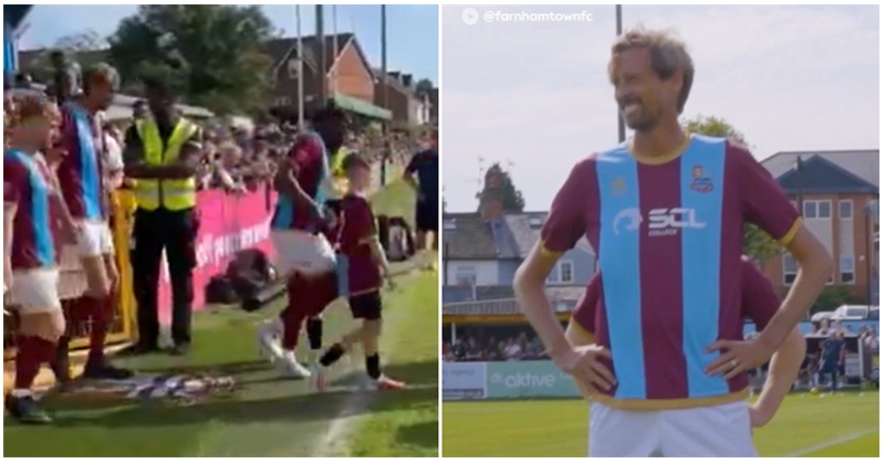 My Saturday was better than yours. Absolute pleasure to walk out with the big man, should of got him to stand by the side of me @FarnhamTownFC @petercrouch @PeterCrouchPod pic.twitter.com/LyWBYxUcjZ
