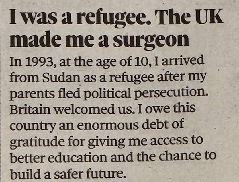 But we reckon there won’t be a single better response than this letter from a Sudanese refugee to the Observer newspaper, highlighted on Twitter by @scottygb.
