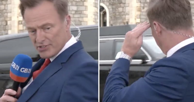 GB News’ @MartinDaubney salutes vehicles as they exit Windsor castle…