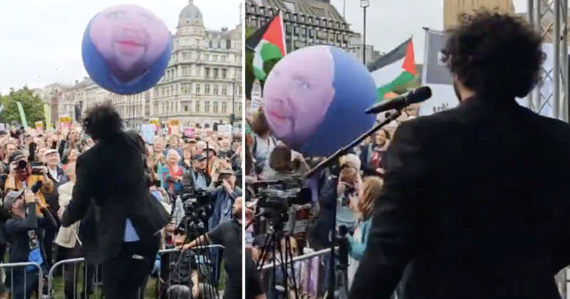 The protest included a bunch of JD Vance bouncy balls which were tossed around the crowd, with the help of MC Nish Kumar, and a very joyful sight it made too.