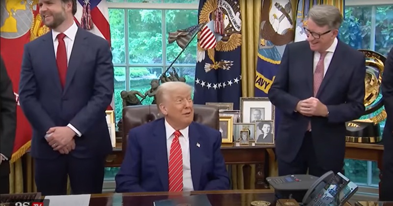 Peter Mandelson, right, looks on as US President Donald J Trump announces a trade agreement between the US and UK in the White House on Thursday, 8 May, 2025. pic.twitter.com/VrDQB8TftH