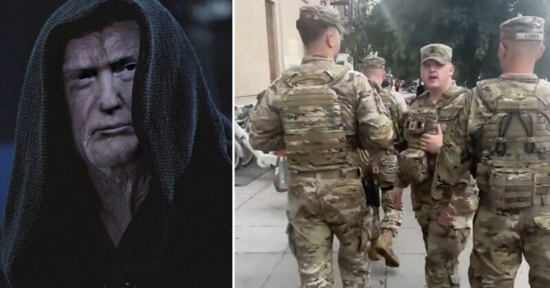 A lot of people feel helpless in the face of what is happening in Washington, DC, and really all of America. One person who doesn’t? The one walking around behind the National Guard in Washington, DC while playing the bad guy song from ‘Star Wars.’