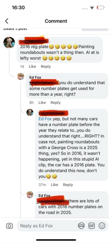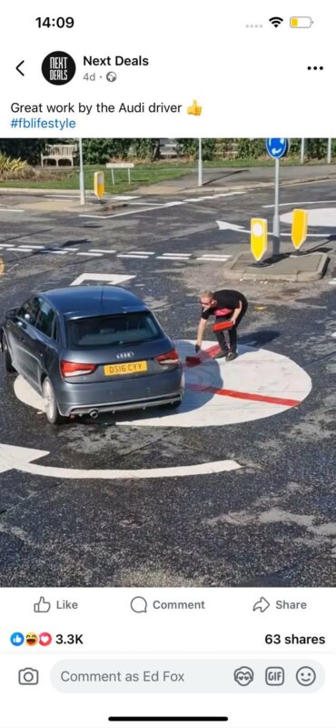 Don’t know what’s thicker, painting the roundabout leaving your car’s number plate in view of the camera or the comment ♂️
