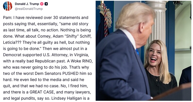 What he is saying quite clearly is that Pam Bondi must indict several of his long-time political enemies immediately or she will be fired and replaced by someone who will. pic.twitter.com/EP8rthm5CS