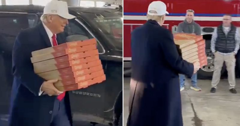 Say what you like about Donald Trump – please! – but never let it be said that he can’t carry a pizza. Eight pizzas in fact, as this video which so impressed one particular Maga that they felt compelled to say this.