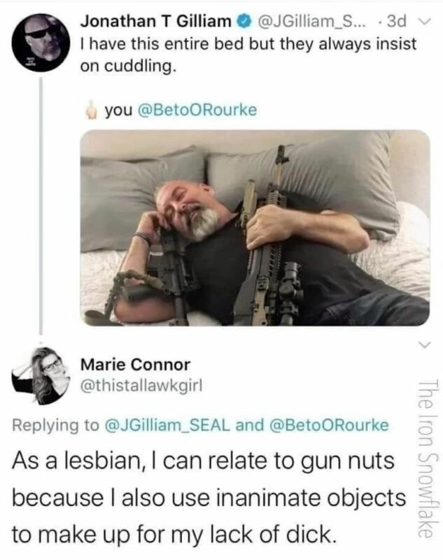 An American gun lover shares his bed with his favourite weapons and this woman’s bulletproof comeback was a proper hall of famer