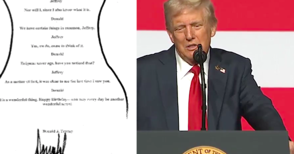 During a rambling, hour-plus-long speech, President Trump found himself talking about his penmanship, most specifically, his signature. He’s still hung up on the fact that Joe Biden used an autopen for some of his signatures. But not this President. President Trump is strong and has a beautiful signature.