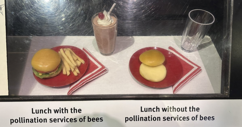 Explaining the importance of bee pollination services to an American: imagine no hamburger