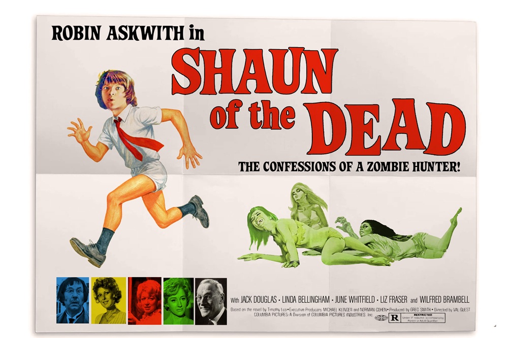 ‘Robin Askwith plays Shaun, a TV repairman, who is having a normal day fixing lonely housewives’ sets with his big spanner …when the dead rise from their graves.’