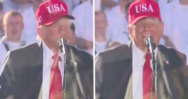 No one in the crowd seemed to understand how to react. There was applause leading into the clip but as Trump keeps rambling, there seems to be confusion and a little bit of fear creeping in. The smiles in the background slowly turn into puzzled looks.