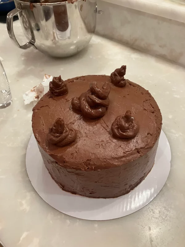27. ‘Chocolate cake attempt (I didn’t have a piping bag so i cut a slit in a ziplock bag) also it was for a school party’