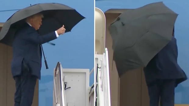 We say this after this clip of him boarding Air Force One carrying a brolly went viral because, well, best have a watch for yourself.