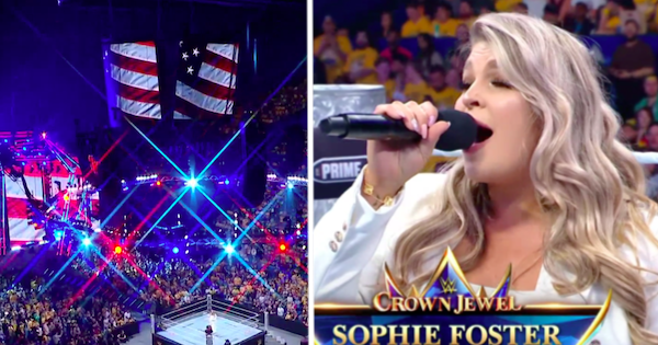 The wide world of wrestling is not necessarily the first place to go in search of dignity and respect. That being said, things certainly escalated quickly when singer Sophie Foster grabbed the mic to sing “The Star-Spangled Banner” at a WWE event in Perth. That’s Perth, Australia.
