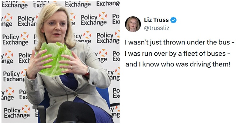 Lettuce Liz jumped on the opportunity to drag out her conspiracy theory – that she wasn’t really a crap prime minister who wrecked the economy …she was stitched up.