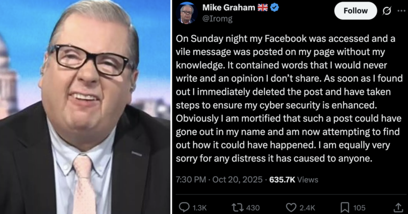 Spare a thought, if you will, for Mike Graham – you remember – the Talk TV presenter who has apologised after his Facebook account was hacked.
