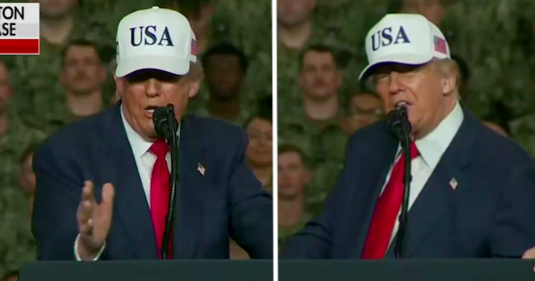 Totally coherent right? The awkward laughter and confused silence this statement is met with would send most public speakers into a shame spiral and permanent, self-inflicted exile. But since this was Donald Trump, he just kept on talking. Then he got onto his plane and talked some more.