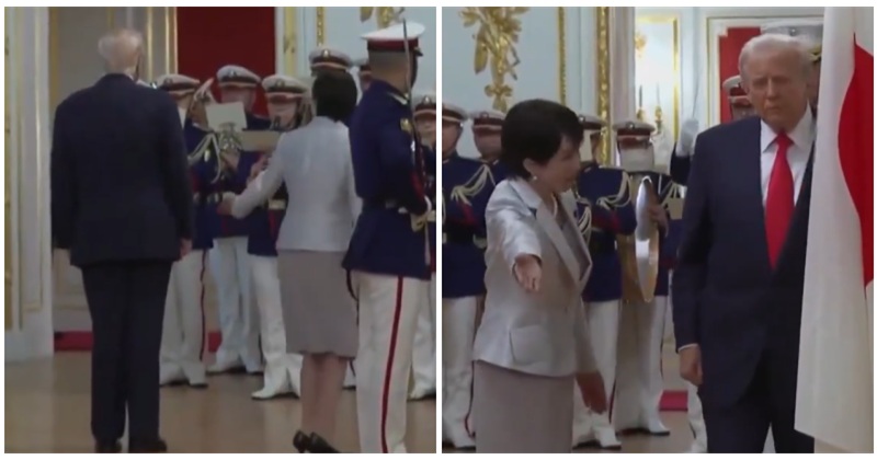 During his visit, in which the two countries came to an agreement on rare earth minerals, Ms Takaichi was seen having to guide the elderly president, who had gone for a bit of a wander.