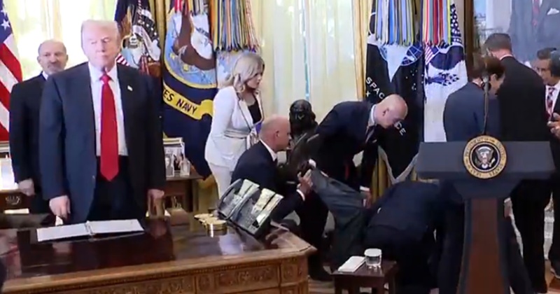 A man collapsed in the Oval Office today and this was our President’s reaction while people rushed to his aid. https://t.co/tRFL7tGNDQ