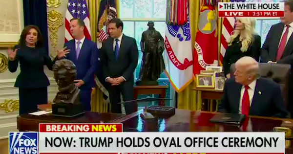 Pirro: “Mr President, there is in this room a group of people who love you, who believe in you, and who are so proud to be in this Oval Office and to be part of this amazing day because you have changed the course of America.” pic.twitter.com/5iPt3TITlp