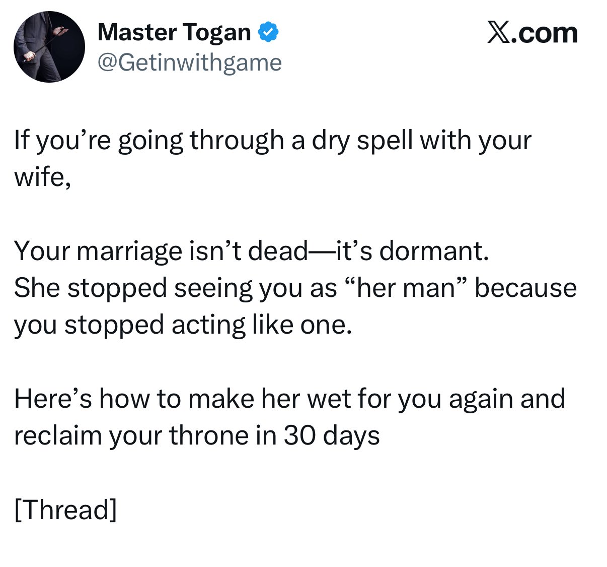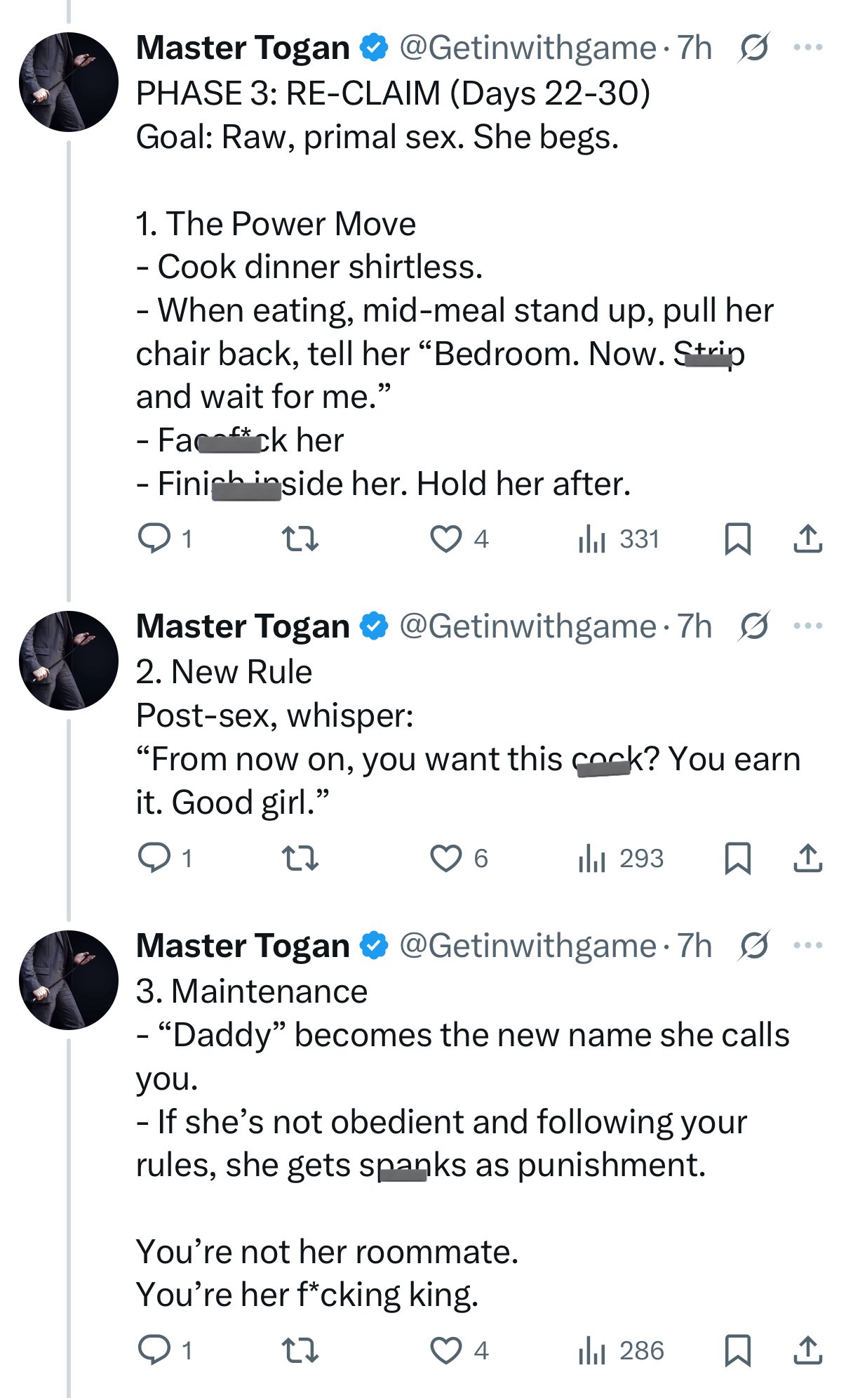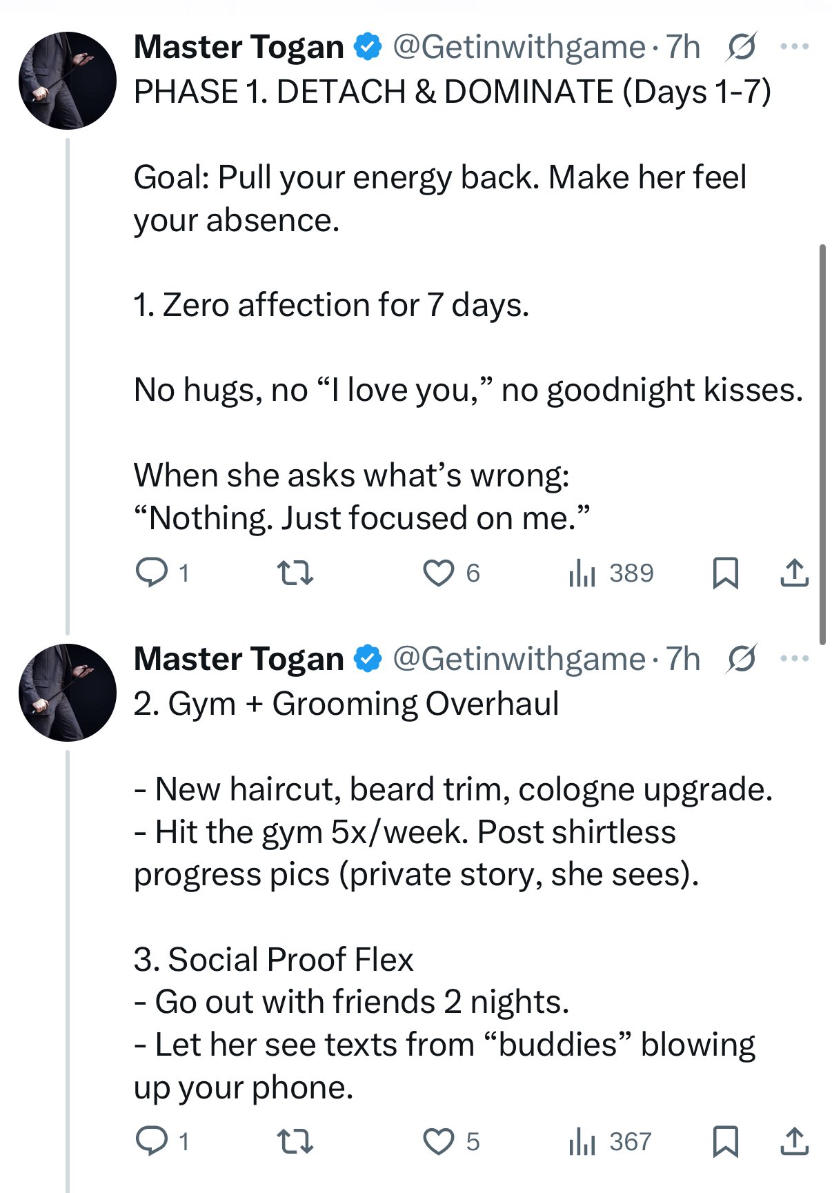 Here’s the latest proponent of toxic masculinity to come to our attention, a delightful chap who calls himself Master Togan, a self-professed author and coach.